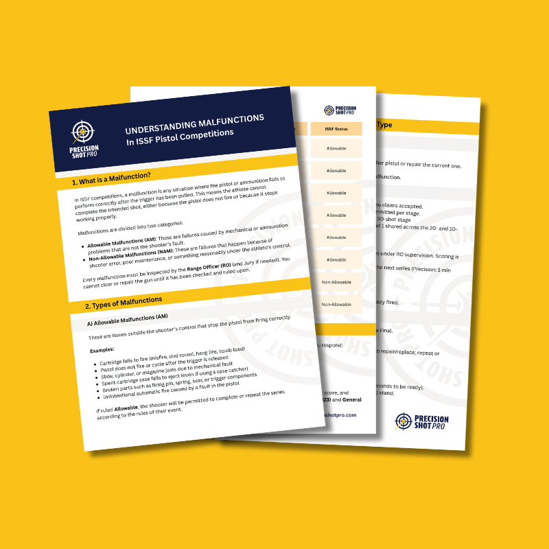 Never get caught out again with our free download 'ISSF Pistol: Guide to Match Malfunctions'.