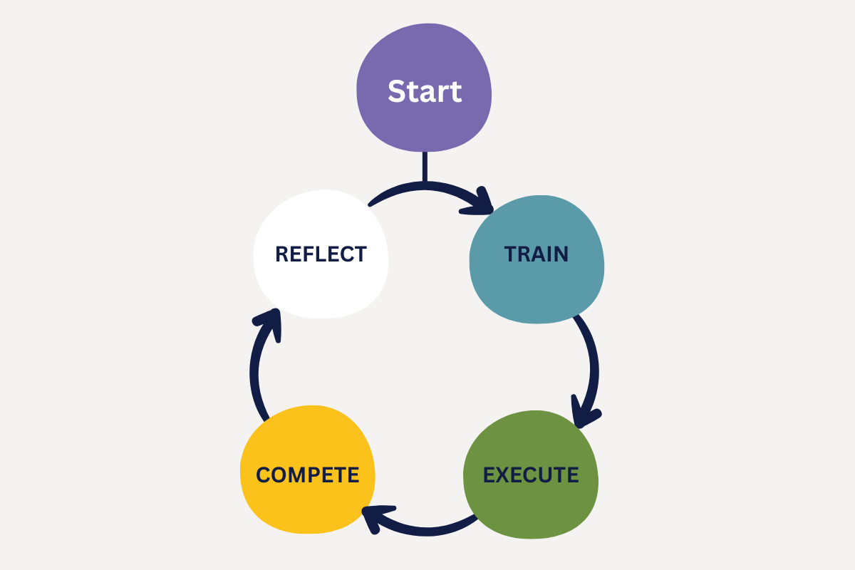 Start with clarity → Train with intention → Execute under pressure → Compete with trust → Reflect with precision.