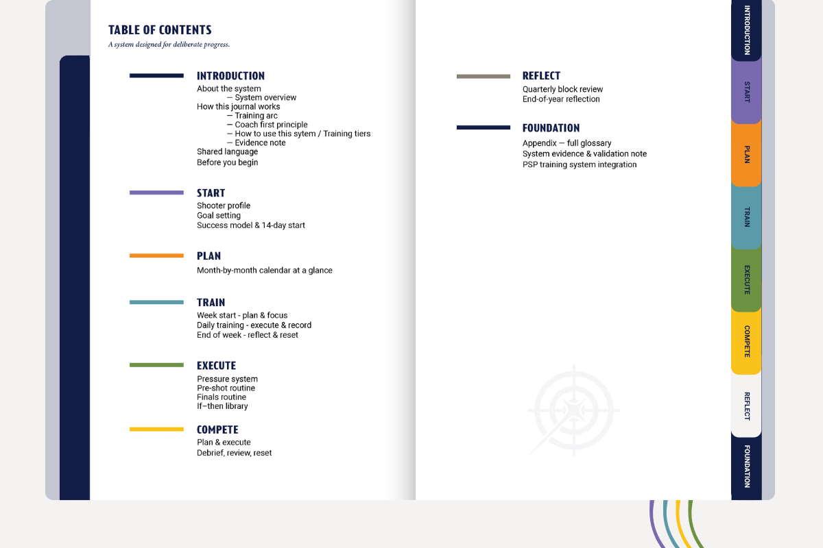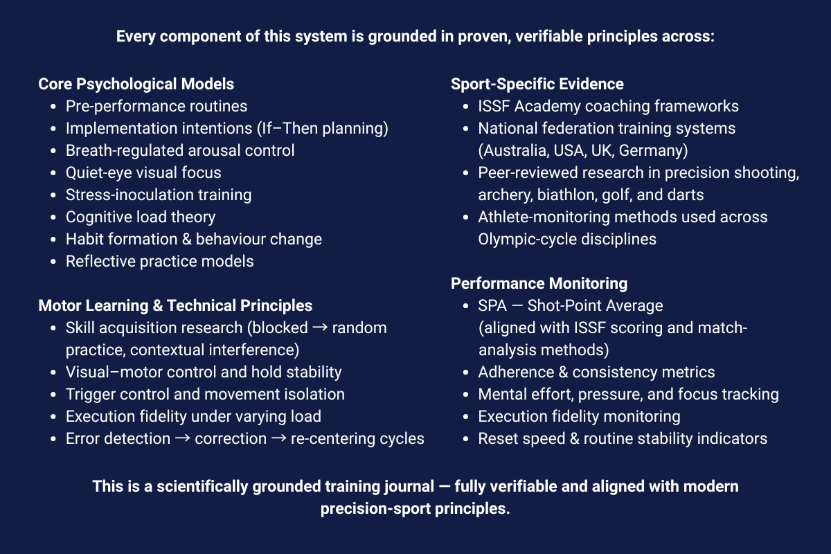 - Shared language front section — so shooters, coaches, and sport psychs speak the same system.